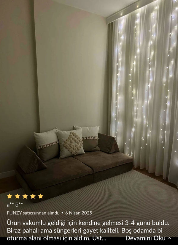 Ürün Vakumlu geldiği icin kendine gelmesi 3-4 günü buldu. Biraz pahalı ama süngeri gayet kaliteli. Boş odama bi oturma alanı olması için aldım. üstünü de farklı kırlentlerle doldrudum. Her gelen bayılıyor ver soruyor. Tatmin etti beni